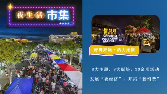 重点打造邻里型市集-月亮湾夜市,汇集生活小件、服装饰品、网红地摊等广受欢迎的夜行消费品类,旨在满足市民的夜行生活需求,夜市还将举办才艺表演、即兴比赛、满额抽奖等助兴活动。