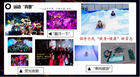 运动“真香”,倡导全民“健身+健康”新常态,将在万达开设“荧光夜跑”,三邻桥特色冲浪,同时还提供足球、派对、夜市、电竞等“撒汗一下”系列活动。