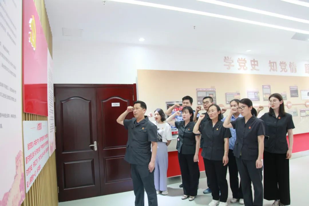 上午,在党员活动室举行“学党史 强信念”重温入党誓词仪式。在党组书记、院长张焱涛的带领下,中层以上党员领导干部和部分党员干警高举右手,面对党旗,郑重宣誓,时刻提醒自己对党忠诚、不忘初心。铮铮誓言,一字一句尽显赤诚之心。