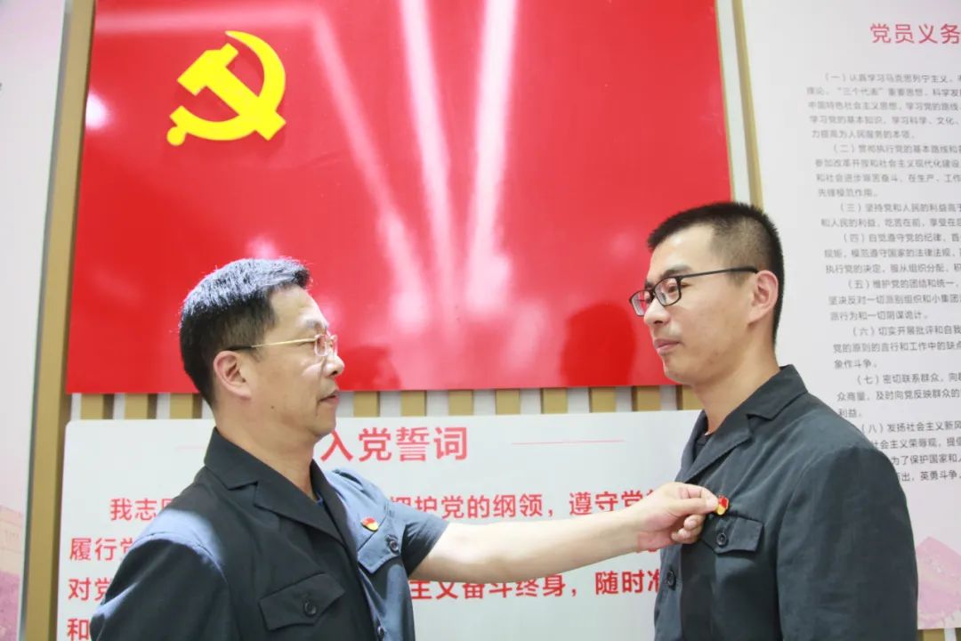 下午,综合党支部组织预备党员代表接受誓词洗礼,在庄严的党旗下,支部书记给预备党员带上党徽并赠送党章,教育引导他们要坚定理想信念、不忘初心使命,为成为一名合格的共产党员而努力奋斗。