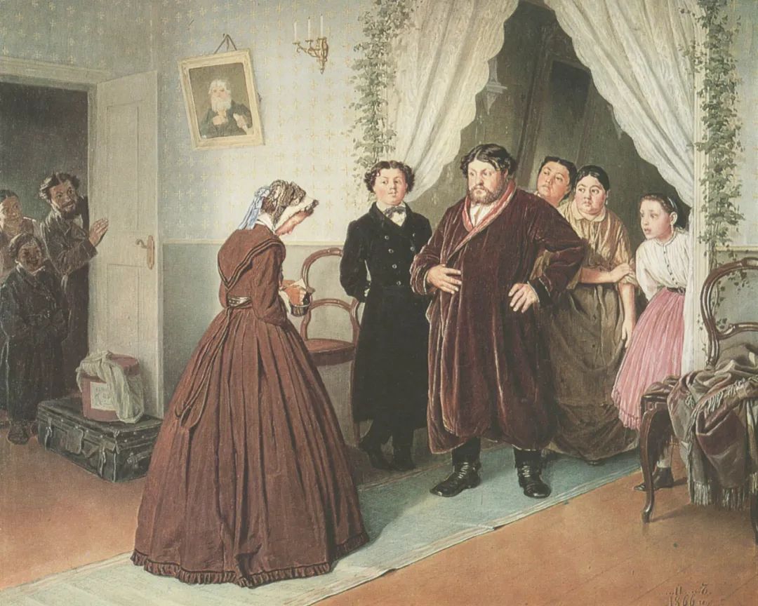 在油画《可怜的老师》创作的19世纪,女家庭教师其实是供大于求的。因为大量男性移民新大陆导致男女比例失衡,而且未婚女性的学历显著提高,拥有当家教潜质的女孩子的数量显著上升。