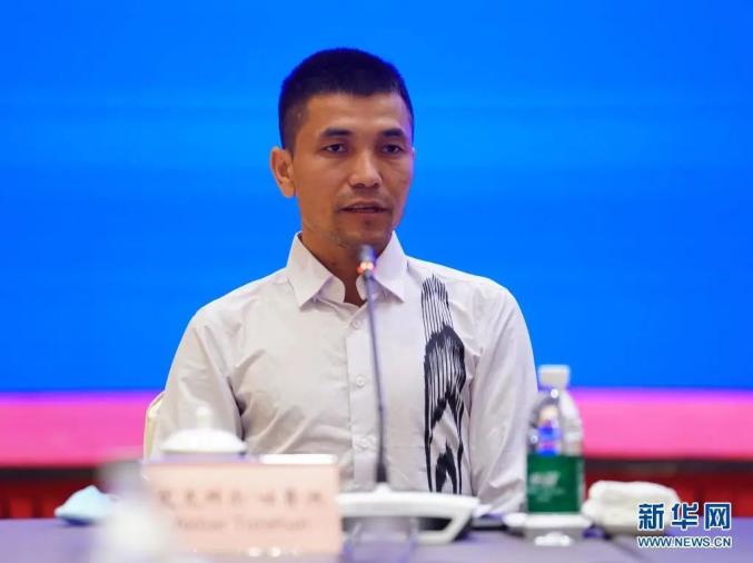 发布会上,来自新疆阿克苏华孚色纺有限公司的艾克拜尔·吐鲁洪介绍了自己的工作经历。