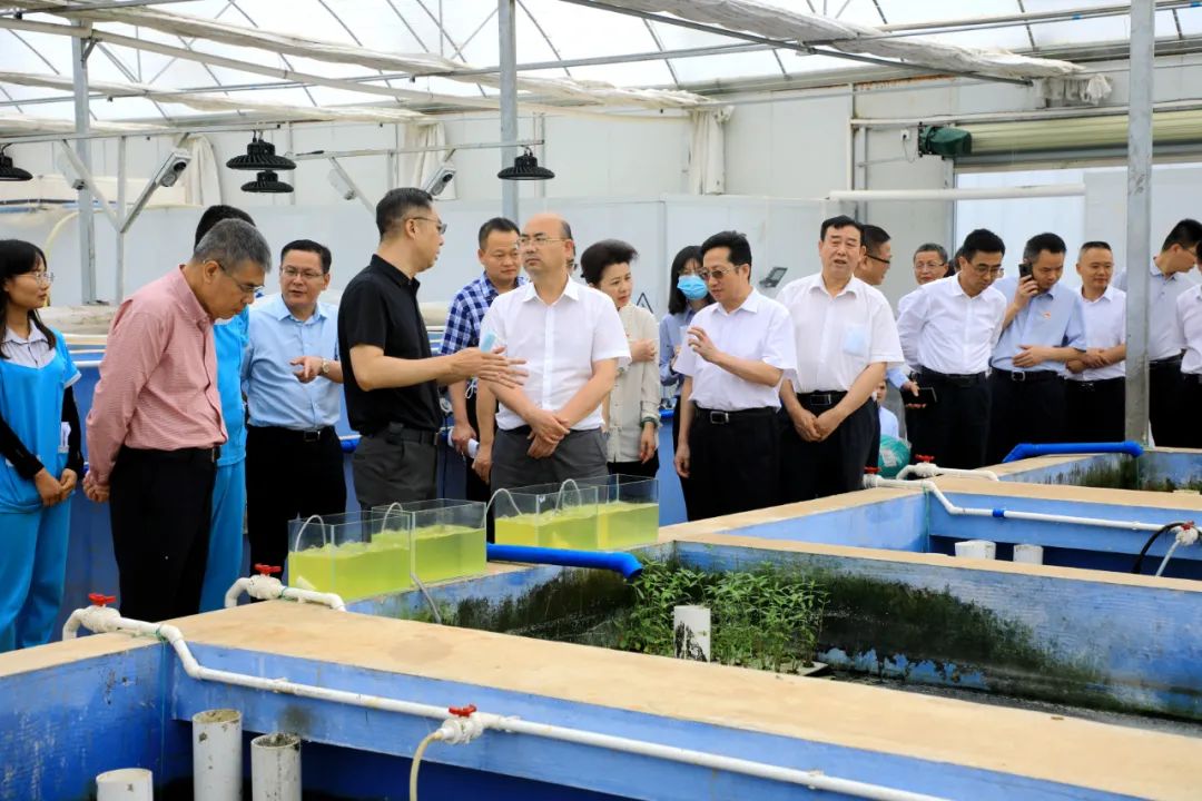 在乐昌佳亚农业新技术有限公司,王瑞军走进实验车间,考察海产养殖技术研发推广及设施化农业、工厂化农业发展情况。他指出,乐昌市具有得天独厚的生态环境和资源优势,要狠抓招商引资和项目建设,发展设施农业、数字农业、智慧农业,探索推进农业“工厂化”,推动产学研用深度融合,全面提升农业综合效益。