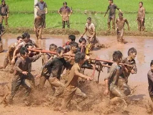 贵州东南部一带的侗族青年男女,每年芒种前后都要举办打泥巴仗节。当天,新婚夫妇由要好的男女青年陪同,集体插秧,边插秧边打闹,互扔泥巴。活动结束,检查战果,身上泥巴最多的,就是最受欢迎的人。新郎的父母会站在田边观看。往往身上泥巴最多的,就是受对方青睐的人。到最后所有人都玩累了,身上也全都是泥巴了,大家就会一起来到河边溪旁,边清洗边打水仗。