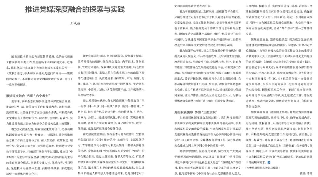 原标题:《党媒深度融合怎么做?来看旗帜杂志社的探索!》