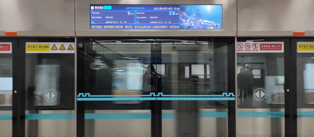 记者在地铁北辰站看到,随着列车驶入站内,屏蔽门与车厢门缓缓打开,14号线列车座椅为淡蓝色和渐变色,还有像公交车一样的横式座椅;在列车门两侧扶手处,新增了供乘客站立时倚靠的靠板;车顶部装有美观的圆环状灯带,配上精准指引站内设施的综合信息屏,不仅让车厢更明亮,也让市民出行更舒适。