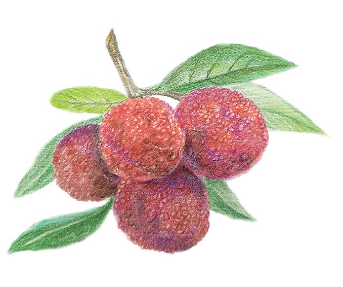 杨梅盛产于我国南方,被称为“果中玛瑙”,素有“初疑一颗值千金”之美誉。杨梅果实色泽鲜艳,汁液多,酸甜可口,消食开胃。
