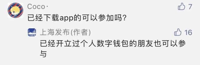 答:非常感谢您的积极参与,此次活动是“五五购物节”结合数字人民币试点的一次常规性研发测试。后续若有需要公众参与的活动,我们将及时公开相关信息,请您继续关注。