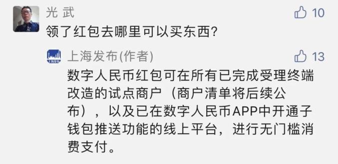 答:(1)数字人民币红包可在所有已完成受理终端改造的试点商户(商户清单将后续公布),以及已在数字人民币APP中开通子钱包推送功能的线上平台,进行无门槛消费支付。