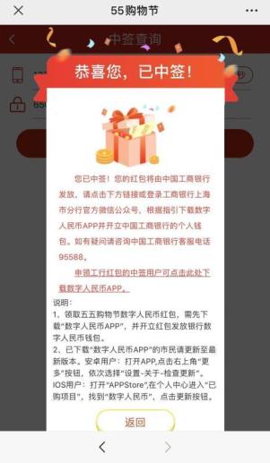 答:中签用户按照中签短信或报名平台指引自行下载数字人民币APP、开立个人数字钱包。运营机构将于6月11日9时起向中签用户个人数字钱包发放55元数字人民币红包。