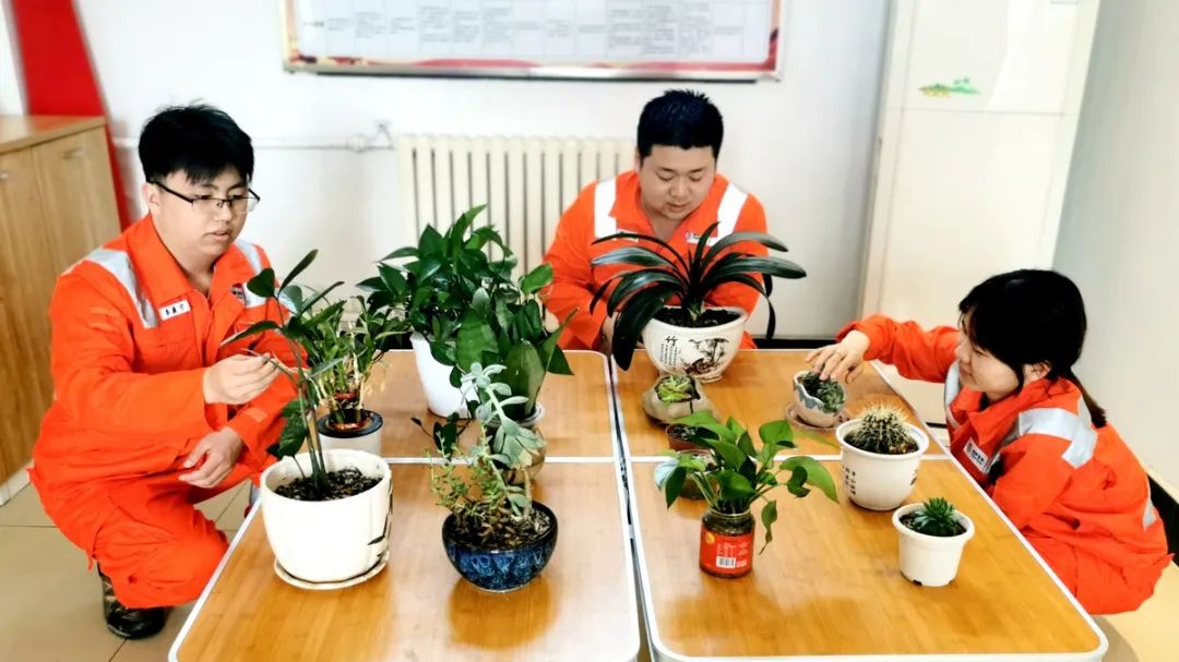 襄阳处荆门站秉承“绿色、节俭、环保”的理念,用部分废弃物做花盆,培育了一批绿色植物,现在绿植长大了,大家可以选择自己喜欢的绿植带回去,美化自己的办公室了。