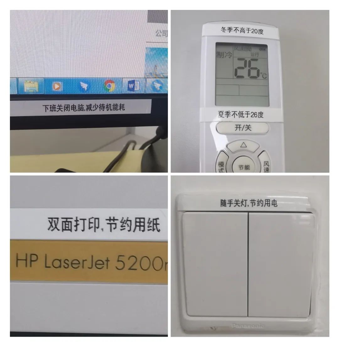 信息中心应用开发中心员工在生产、办公区域张贴相关标语,将节能、环保落实在细节上,让绿色文化理念入脑入心,推进企业绿色低碳发展。