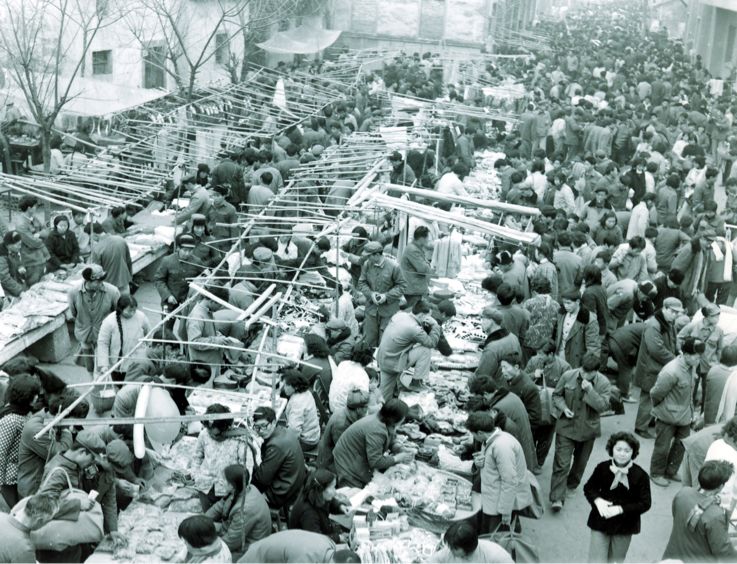 1984年12月6日,义乌第二代市场——新马路市场建成,并正式更名为义乌小商品市场。摊主们告别油毡布棚,搬进室内。