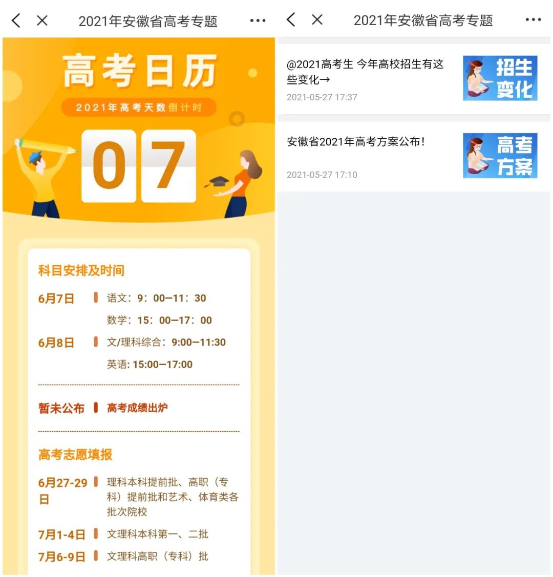 “2021年安徽高考专题”具体内容