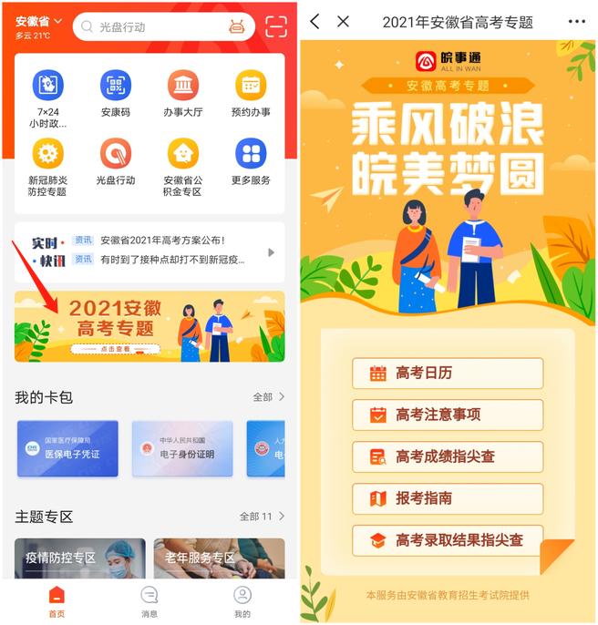 原标题:《皖事通2021高考专题上线啦!高考成绩、录取结果查询更方便!》