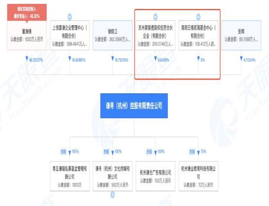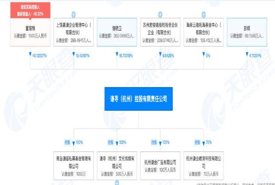 从股权信息来看,该公司由谦寻(杭州)控股有限责任公司全资持股,董海锋直接持有后者股份。