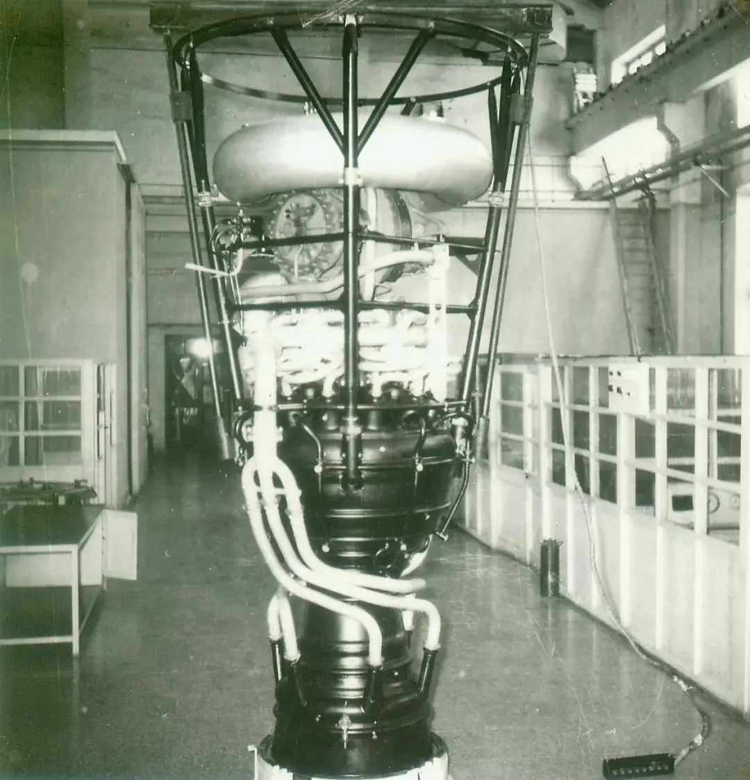 ▲我国生产的第一台火箭发动机。图据中国航天科技集团六院官方微信公众号