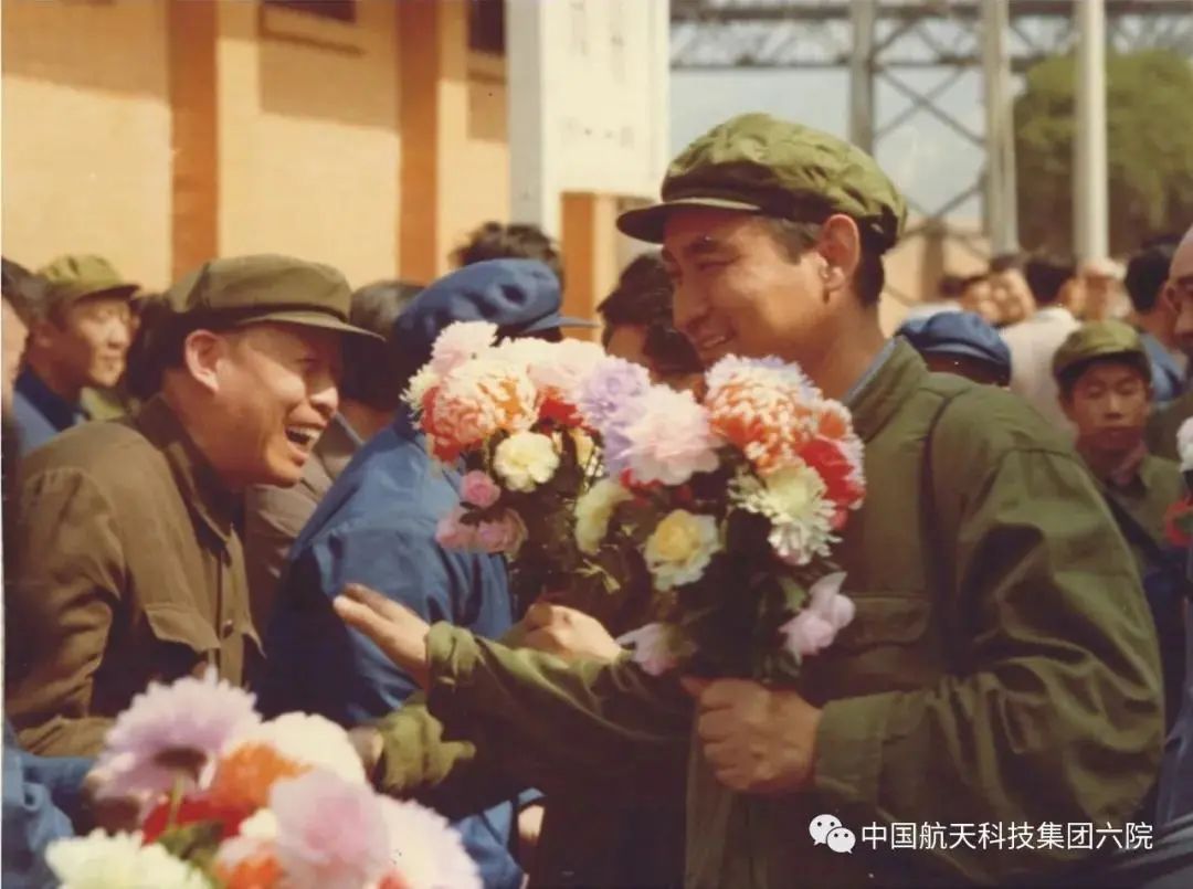 ▲1984年,067基地领导迎接参加我国第一颗试验通信卫星的试验队胜利归来。图据中国航天科技集团六院官方微信公众号