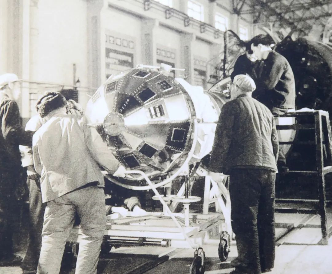 ▲1970年初,科研人员在厂房内测试“东方红一号”卫星。1970年4月24日,我国第一颗人造卫星“东方红一号”成功发射。图据东方IC