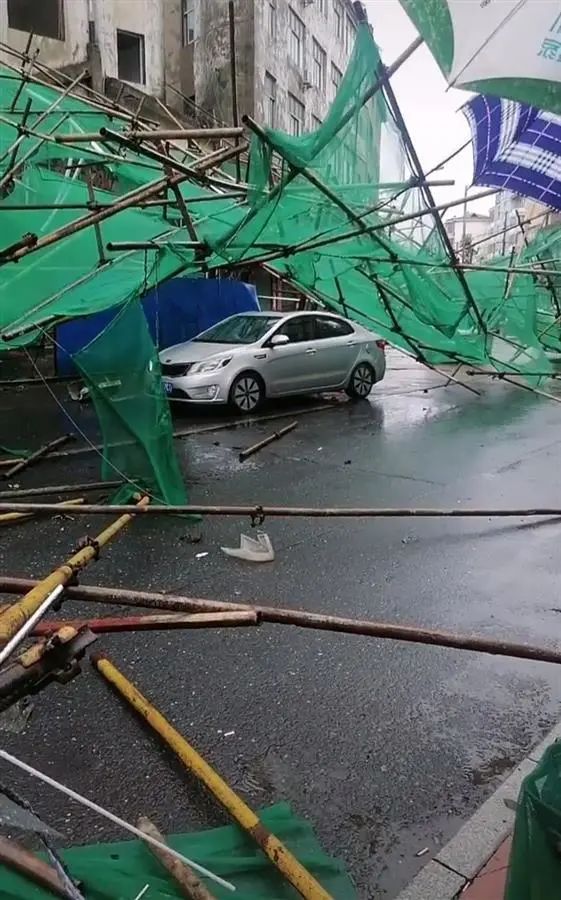 6月3日14时许,江西九江都昌县西湖路一房屋发生外墙脚手架倾倒事故,造成7人受伤。据附近一商户称,事发时,都昌县遭遇大风天气,脚手架被风吹垮了。出事的脚手架有四层高,垮塌后砸中了一些行人,有人受轻伤。