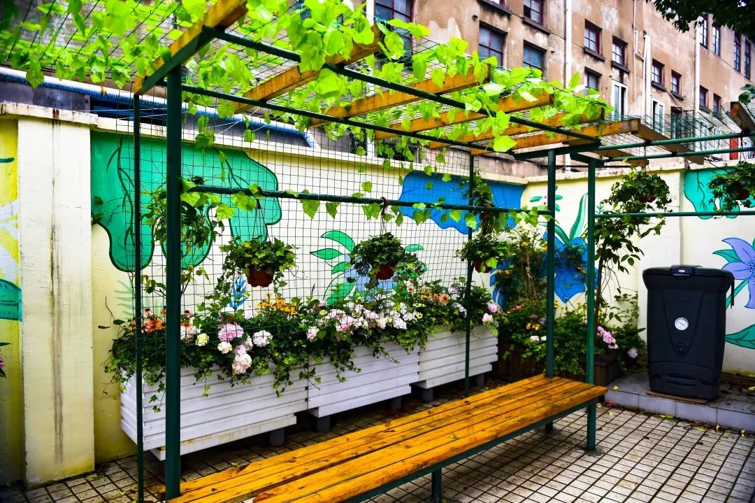 随后,响应垃圾分类号召,“社区花园”又进行了关于“垃圾堆肥”的改造,在“向阳院”内摆放堆肥桶,用湿垃圾变身营养肥料,为居民提供垃圾分类的新思路。每隔一个月这里都会进行一次垃圾堆肥,滋养着花园的花朵。