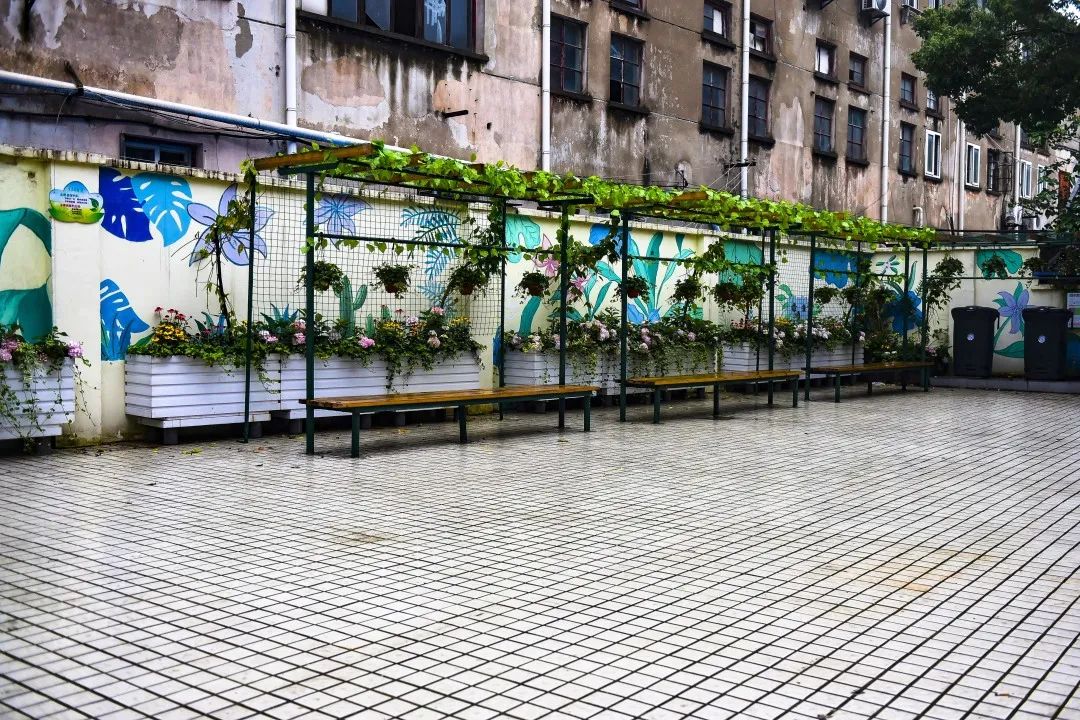 为给社区居民提供一处娱乐休闲的生活场所,凉州路居委会和居民合力拆除了小区内一处脏乱的违章建筑,在原有地点增加花架、墙画、娱乐设施,取名“向阳院”,“社区花园”成功入驻。