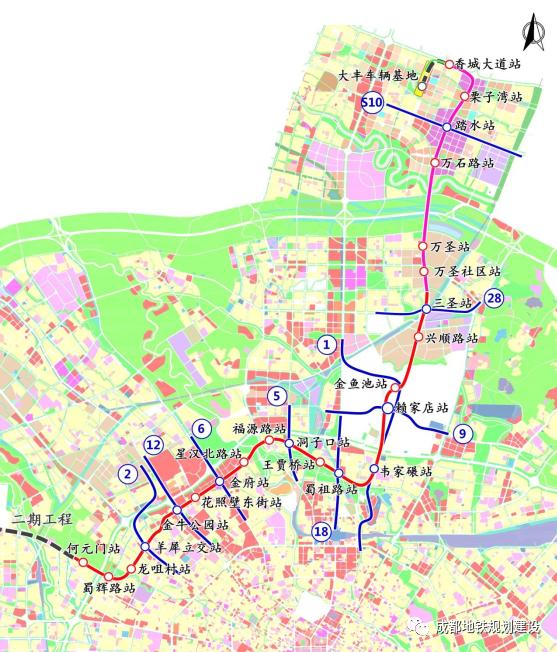 1)北延段:一、二期工程向中心城区的延伸线,包含火车南站(不含)~火车北站段四站四区间及升仙湖主所;北延段线路长度10.985km,设车站4座,均为地下站。