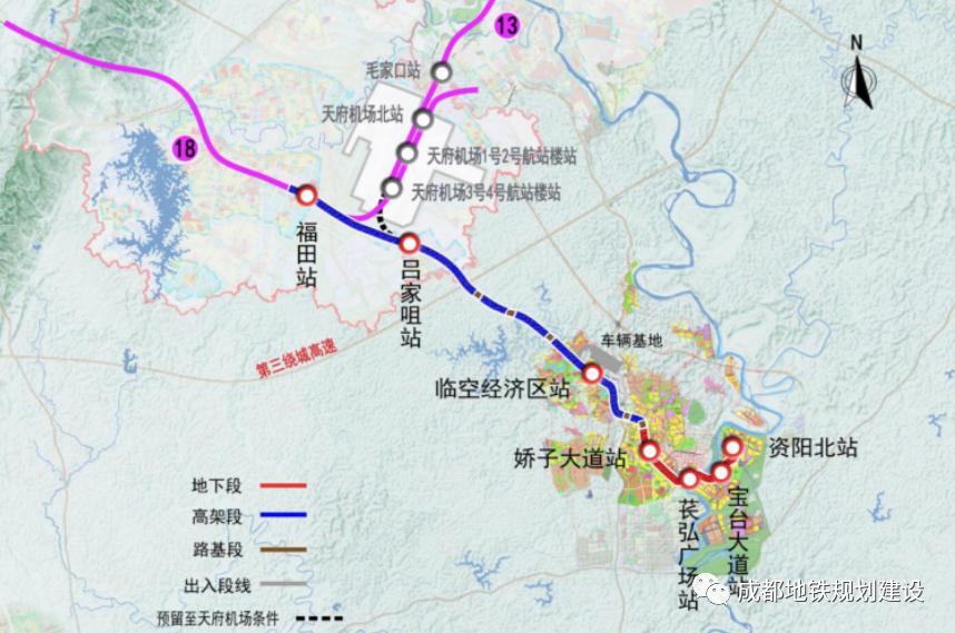 轨道交通资阳线工程是连接成都市天府国际机与资阳市的轨道交通线,位于成都市东部新区、简阳市和资阳市,工程起于成都轨道交通18号线福田站,止于高铁资阳北站,线路自西向东沿途主要沿在建资路一幸福大道—仁德西路—南彩大道一滨江大道—宝台大道—蜀乡大道敷设。