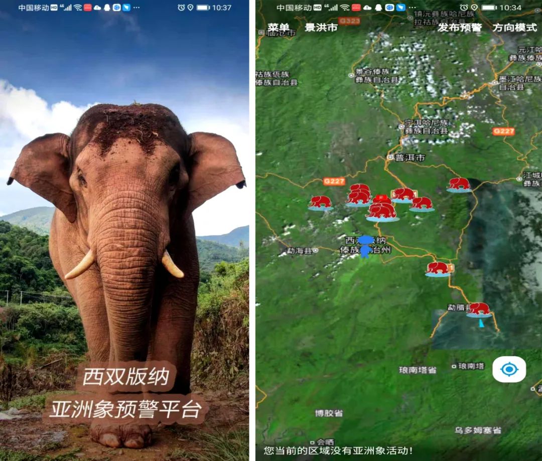 在此基础上,西双版纳州不断完善亚洲象监测预警体系建设,加大无人机、视频监控、红外相机、人员跟踪监测的密度、深度和广度,开发了“西双版纳亚洲象预警App”,通过手机App、微信平台等实时发布亚洲象预警信息。同时强化设卡警戒工作,在亚洲象活动区域或地段,及时安放警示牌,专人值守,避免群众冒险进入,确保过往人员和劳作群众的生命安全。