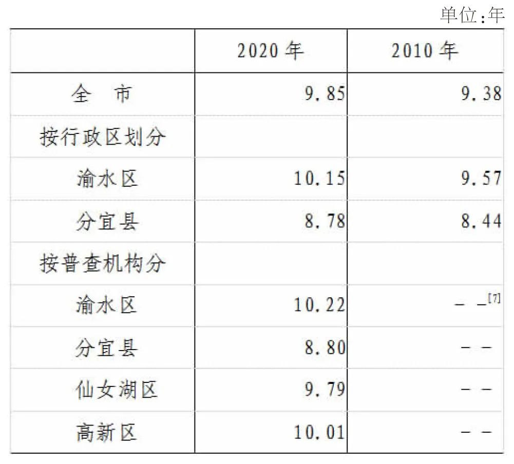 [7]2010年第六次全国人口普查没有按普查机构计算平均受教育年限。
