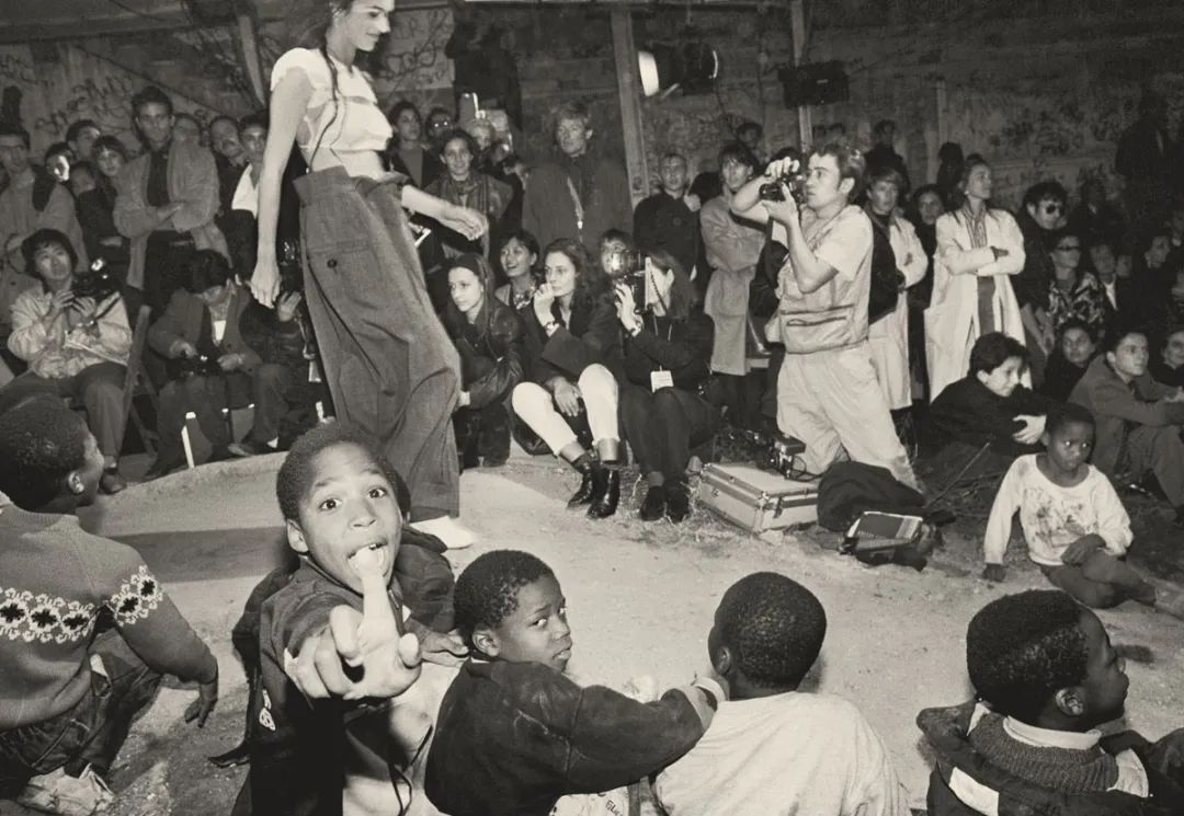 模特们蹦跶着跑上T台,摇滚乐队在一旁演出,观众们坐在地上,兴起时甚至可以跑来跑去,在当时简直是惊世骇俗。