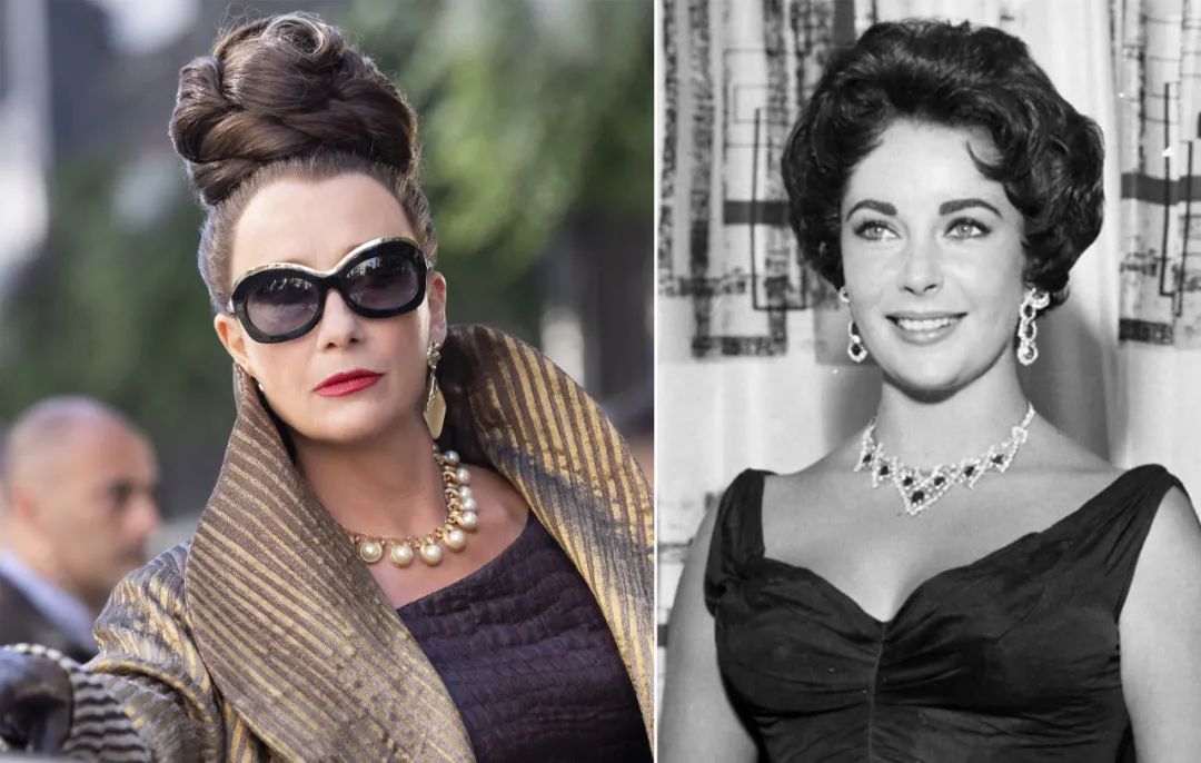 她每次出场必戴的珠宝戴法,是借鉴了好莱坞黄金年代的巨星伊丽莎白·泰勒,既然是 old money,怎么能少了厉害的高珠来增加排面呢。