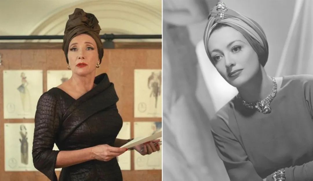 老派巨星琼·克劳馥的经典头巾造型,也被男爵夫人所用,增加气场。