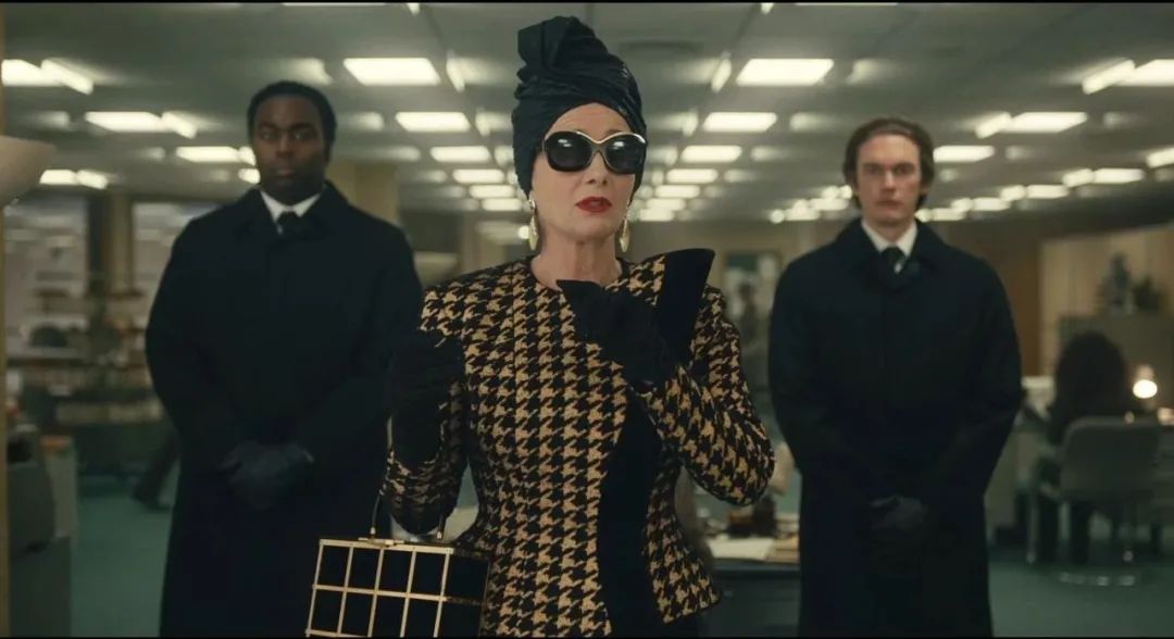 她的对手,艾玛·汤普森饰演的时尚界女魔头“男爵夫人”,也毫不重样地换了 33 套奢华的礼服。