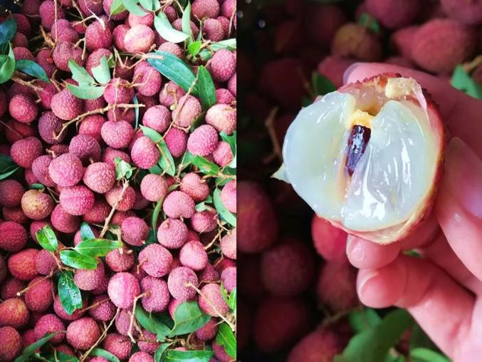 灵山荔枝一向以果大色美、味甜汁多见长,主打早熟的「三月红」和较晚熟的「桂味」这两个品种。