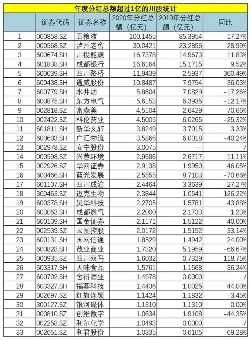 原标题:《275亿元!四川91家上市企业分红,哪家分得最多?》