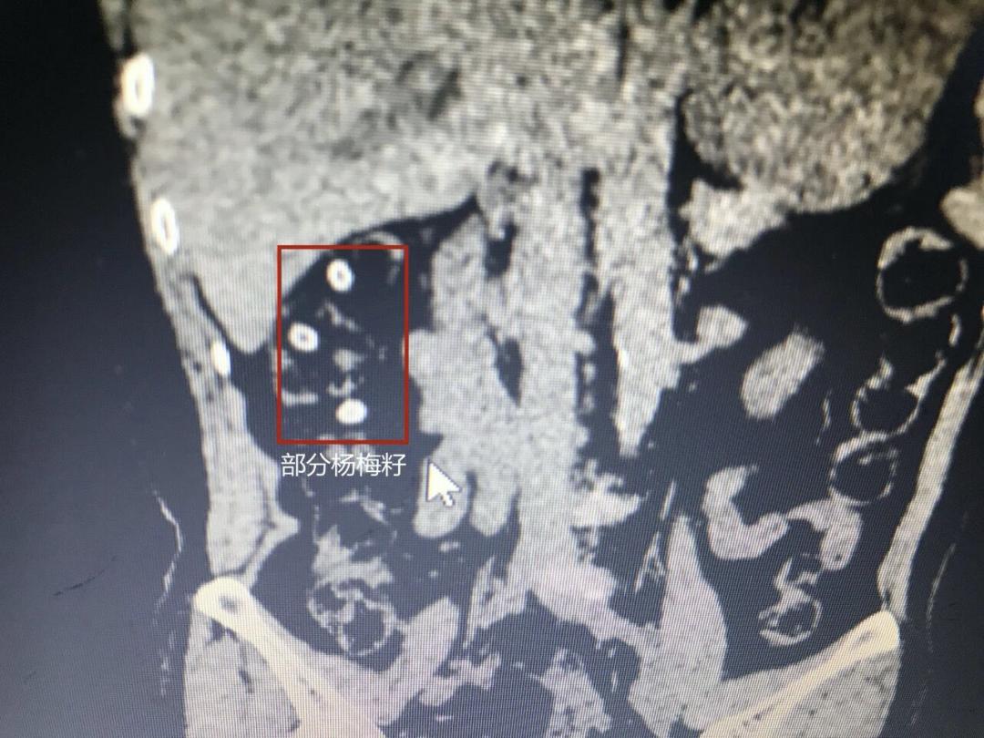 日前,我县一位60多岁的老人张大妈,因吃杨梅不吐籽出现腹痛症状赶到医院急诊室就诊。因她肚子比较痛,医生怀疑她是不是急性穿孔的急腹症,安排做了一个全腹部的CT。