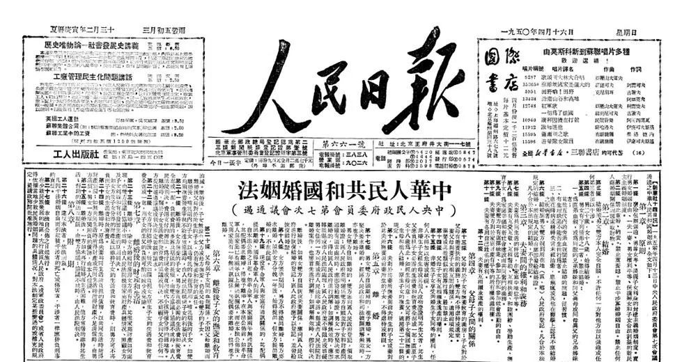 1950年5月1日,首都北京20万群众参加了中华人民共和国成立之后第一个国际劳动节的庆典。那一天红旗猎猎、鼓声喧天,新中国的第一部法律——《中华人民共和国婚姻法》在节日的气氛中颁布施行。