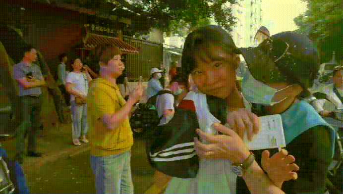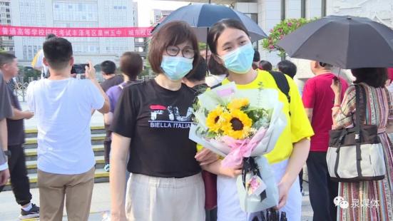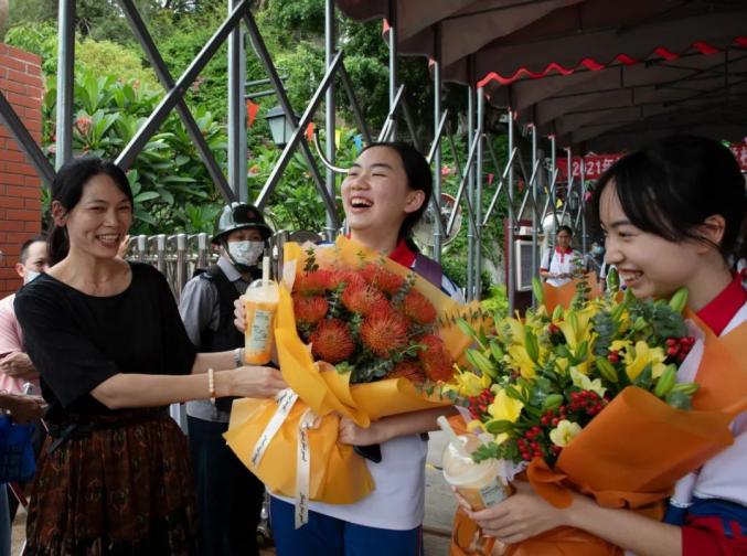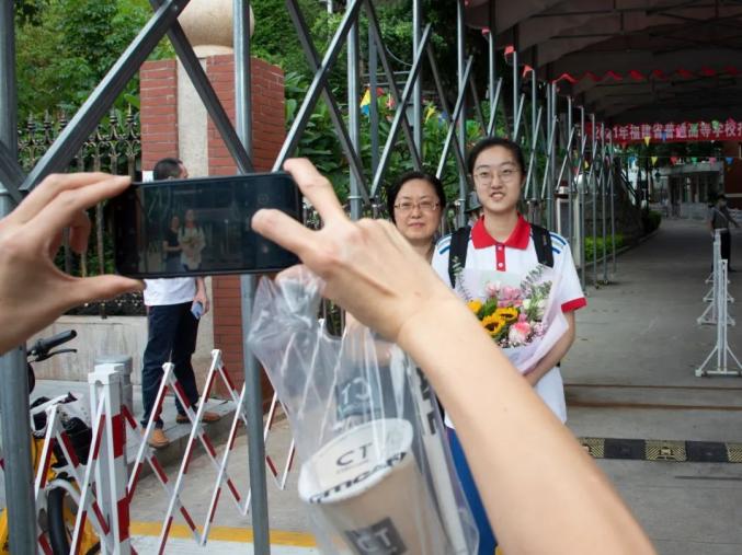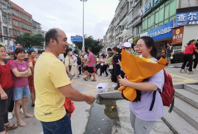 迎接高考“凯旋”的孩子