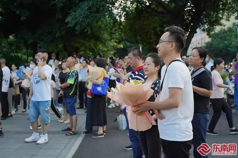 在福建教育学院附属中学考点外家长正在等候考生。