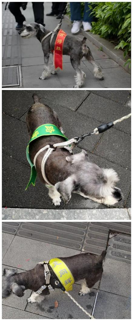 甚至在家长的鼓捣下,亲友团里的宠物狗狗也“换装营业”了