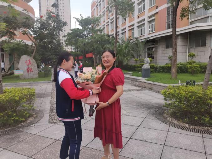 家长用鲜花、微笑和拥抱迎接