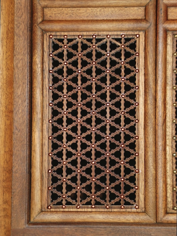 木门上安装铜钉、铜拉手、铜看页