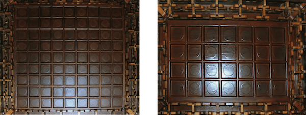 左图中厅天花板为八十一块 右图大抱厦天花板为二十八块