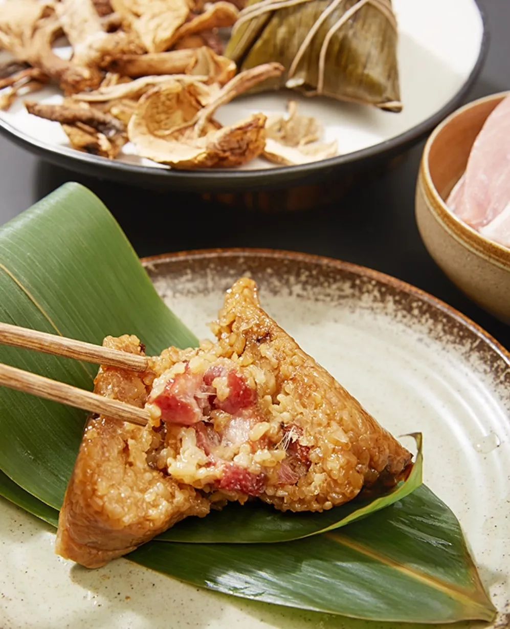 牛肝菌五花肉粽选用了上等的云南牛肝菌,那个鲜美味道堪称一绝,鲜香的牛肝菌加上高汤,这个搭配完美激发了粽子的味美层次感~