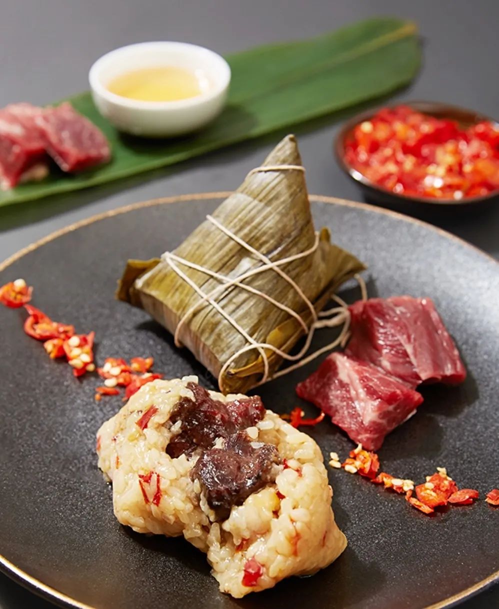 火锅里经常点的剁椒牛肉竟然也出现在了粽子里?这能好吃吗?当然可以!牛胸肉+湘味剁椒的搭配,还有清雅的桂花来突出粽子原有的香味。