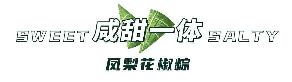 最最最上头的一定非凤梨花椒味的粽子莫属了,口感上微麻微辣,带有甜甜的凤梨味,而花椒也更能够激发出凤梨的味甜多汁。