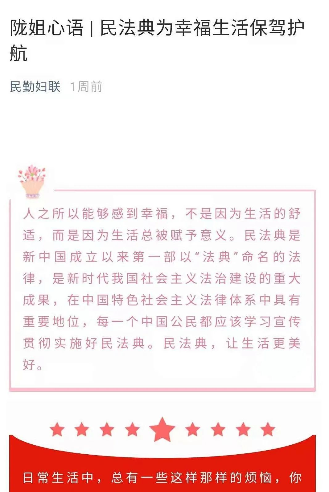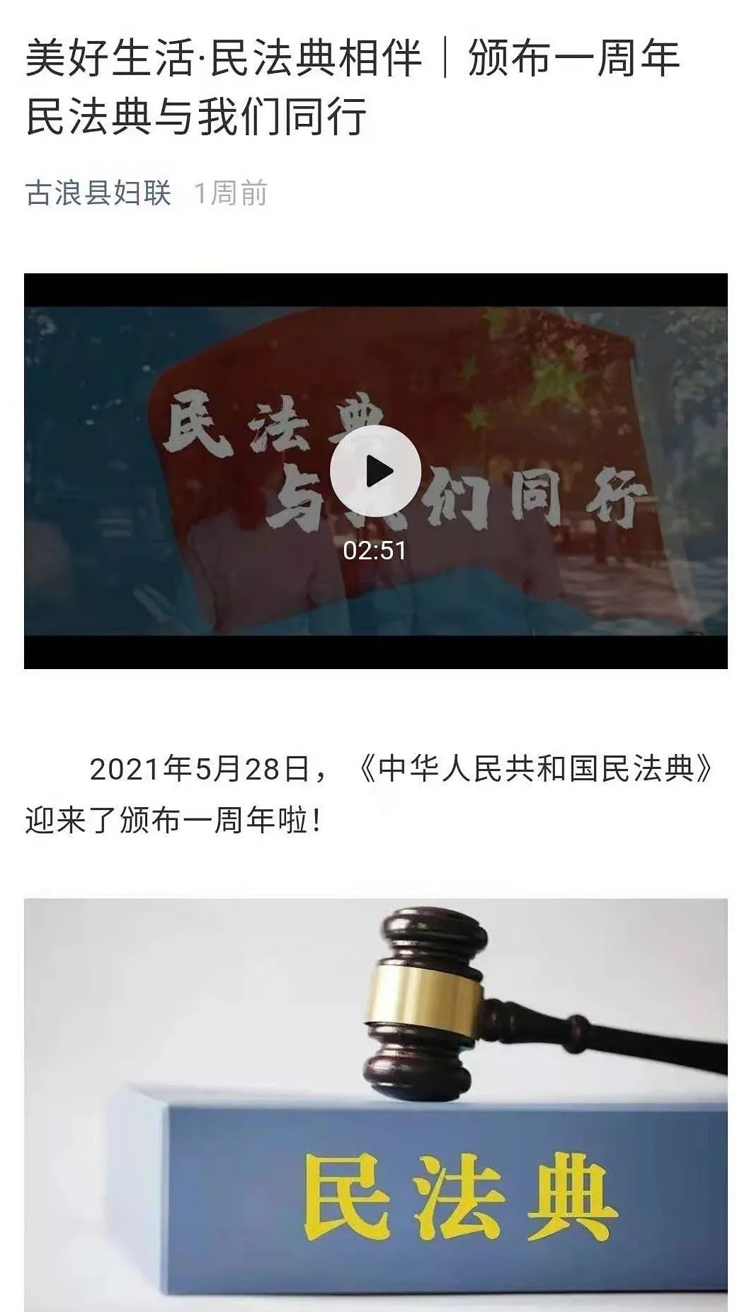 各级妇联充分利用微信平台、妇联工作群、妇女连心群持续开展民法典宣传,通过音频、视频、文字、以案普法等多种形式,将民法典传递到妇女指尖。