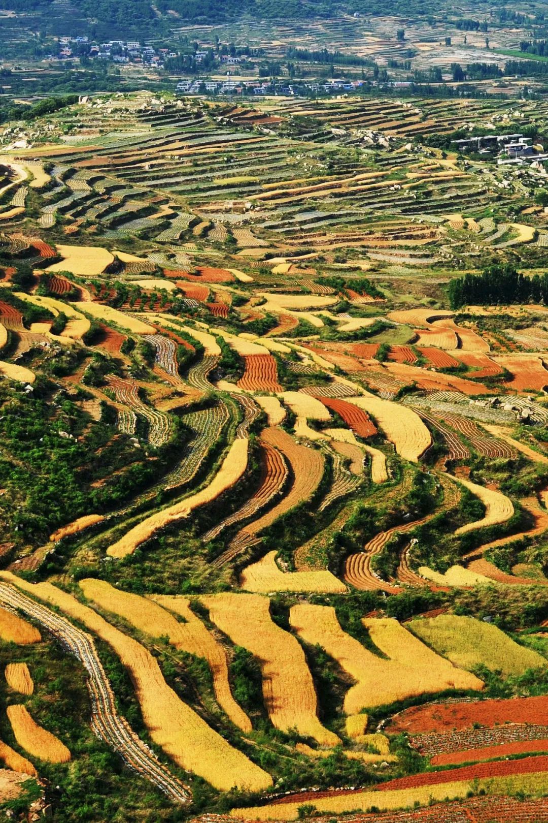 临近关东的庆阳,董志塬上每年都有“高塬麦浪”的壮阔景色;陇东的山地之间,麦田的边缘顺着千沟万壑勾勒出别样的线条。