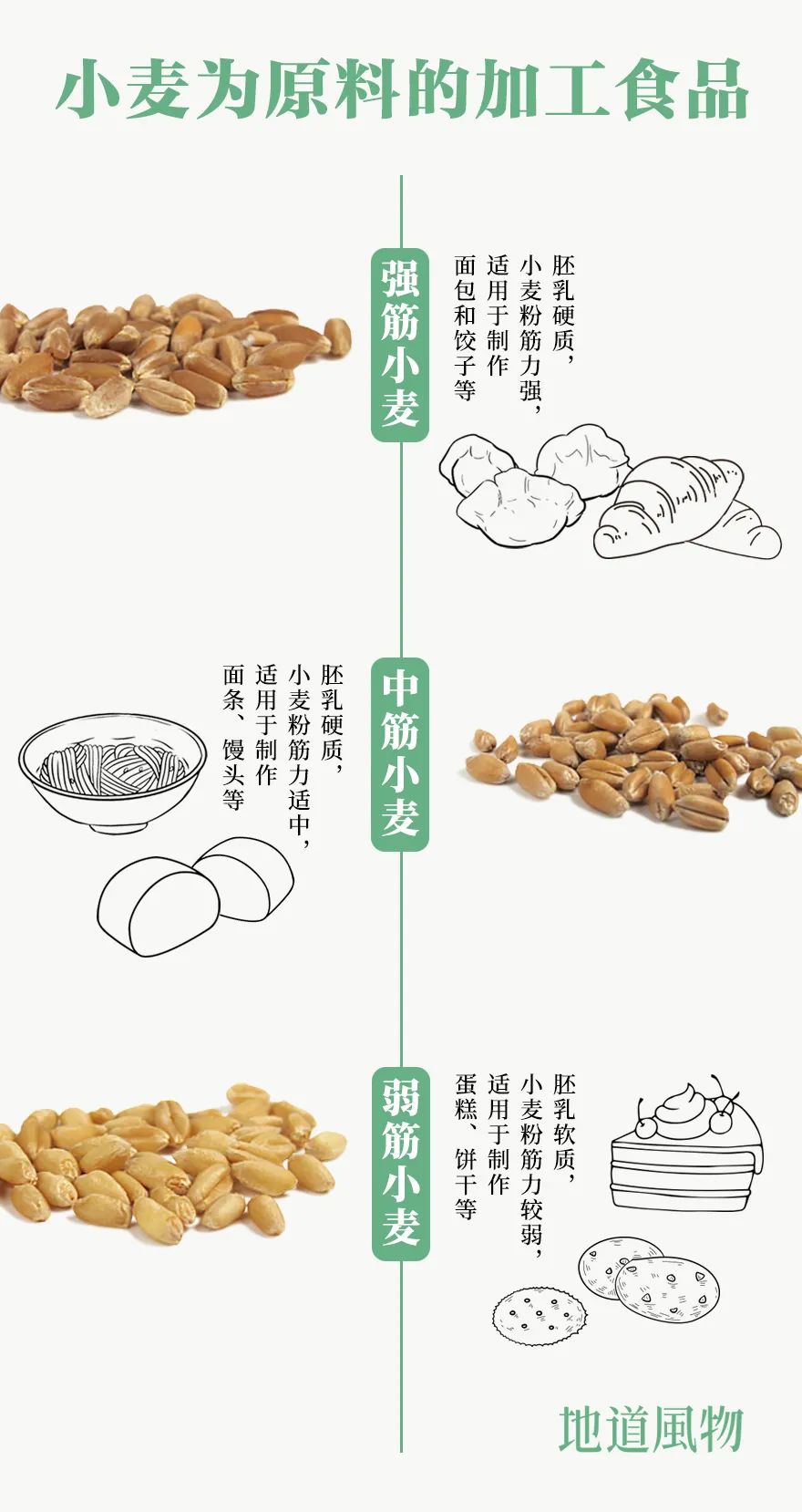 ▲ 不同品种的小麦适合制作不同的食物。 制图/刘航